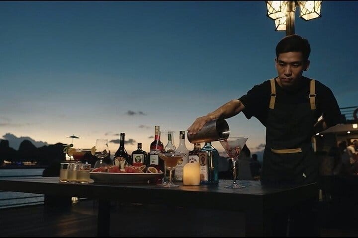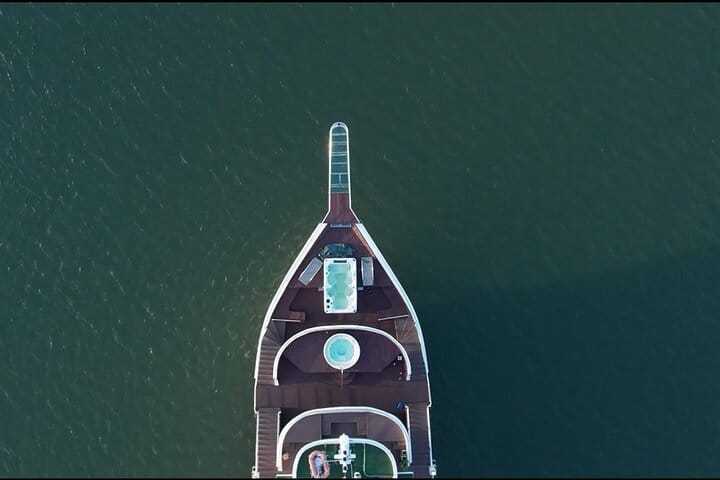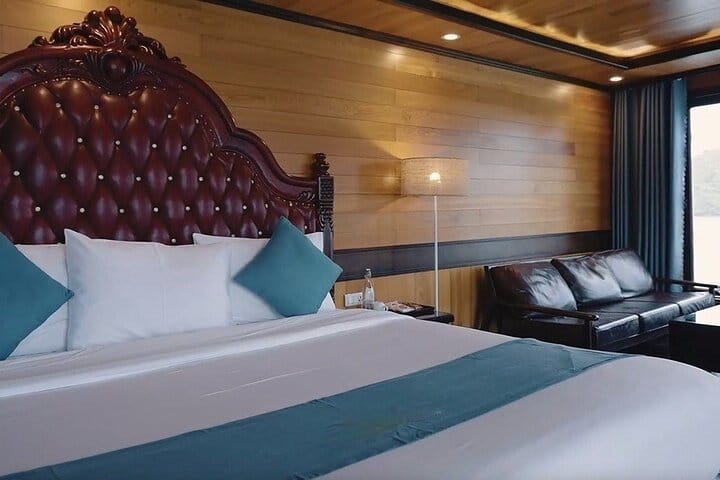 The Genz Cruise, one of the largest boats in Halong Bay, offers a unique experience for young travelers. It offers a beautiful tour of Halong Bay with fun activities like kayaking, water trampoline, swimming, boat jumping, beach volleyball, and football. This party and activity experience is perfect for those seeking beautiful scenery, adventure, and new friends. Launched in September 2017, the Genz Cruise is equipped with advanced technology, making it a highlight of your Vietnam trip.
