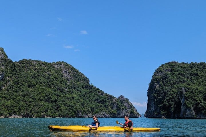 Set off on the Premium Cruise Full Day Exploring Lan Ha Bay with Serenity Explorer Cruises 5 for an unforgettable half-day adventure. Begin with a convenient hotel pickup in Cát Bà Town or meet at Beo Port, then cruise past the Cai Beo Floating Fishing Village, Cua Dong, and Tortoise Island. Immerse yourself in Lan Ha Bay with activities like kayaking, swimming, and enjoying the bay’s longest water slide. Relax with a tea party while taking in the breathtaking views of Cát Bà National Park and the Cat Ba Archipelago. Conclude your journey back at Beo Port, carrying with you lasting memories of Vietnam’s stunning coastal landscapes.